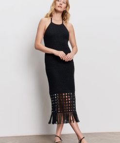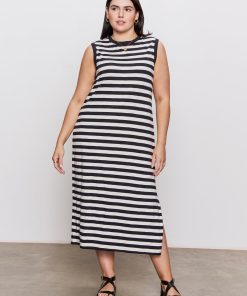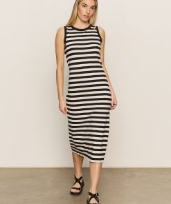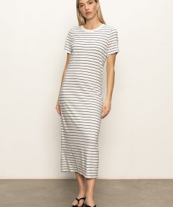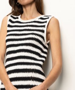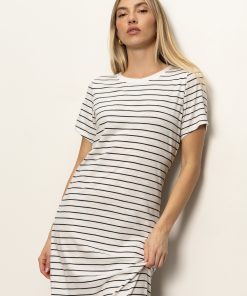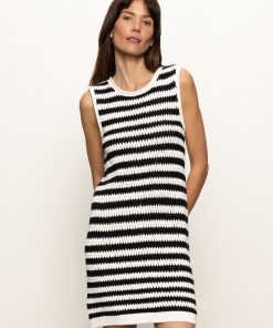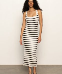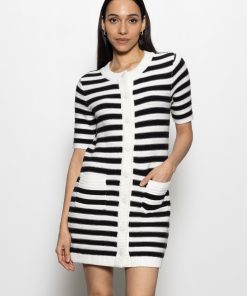 Sanctuary Clothing Clothing Dresses & Jumpsuits Button Front Knitted Dress Chalk And Black Stripe