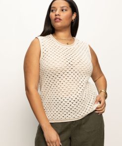 Sanctuary Clothing Clothing Sweaters & Cardis Crochet Shell Sweater Eco Natural Extended Sizing