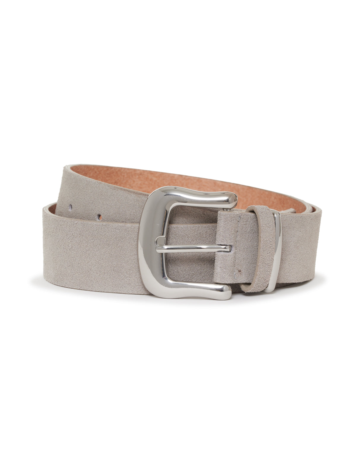 - The Rowan Belt Stone by Sanctuary Clothing features light grey suede and a shiny silver buckle.