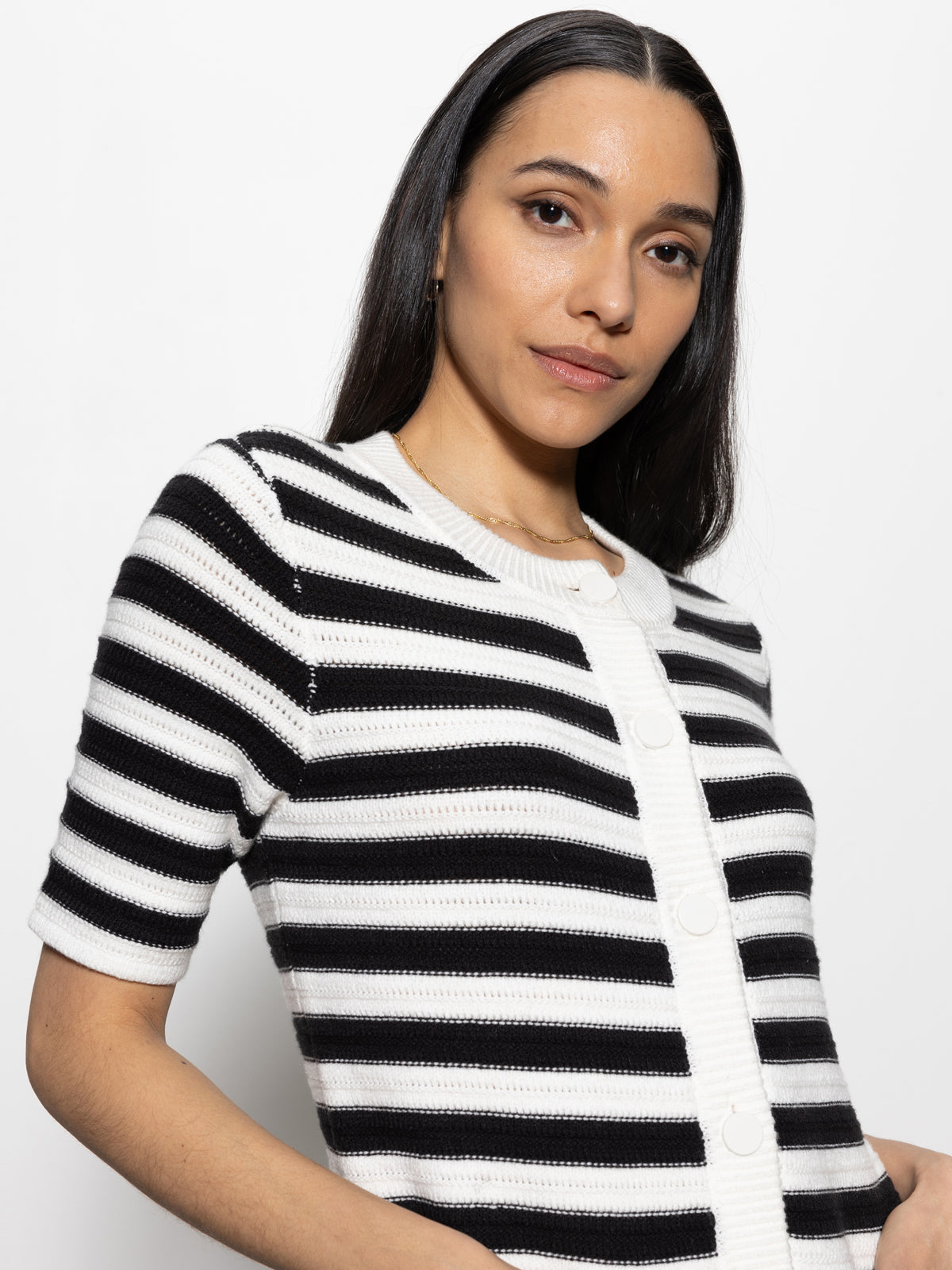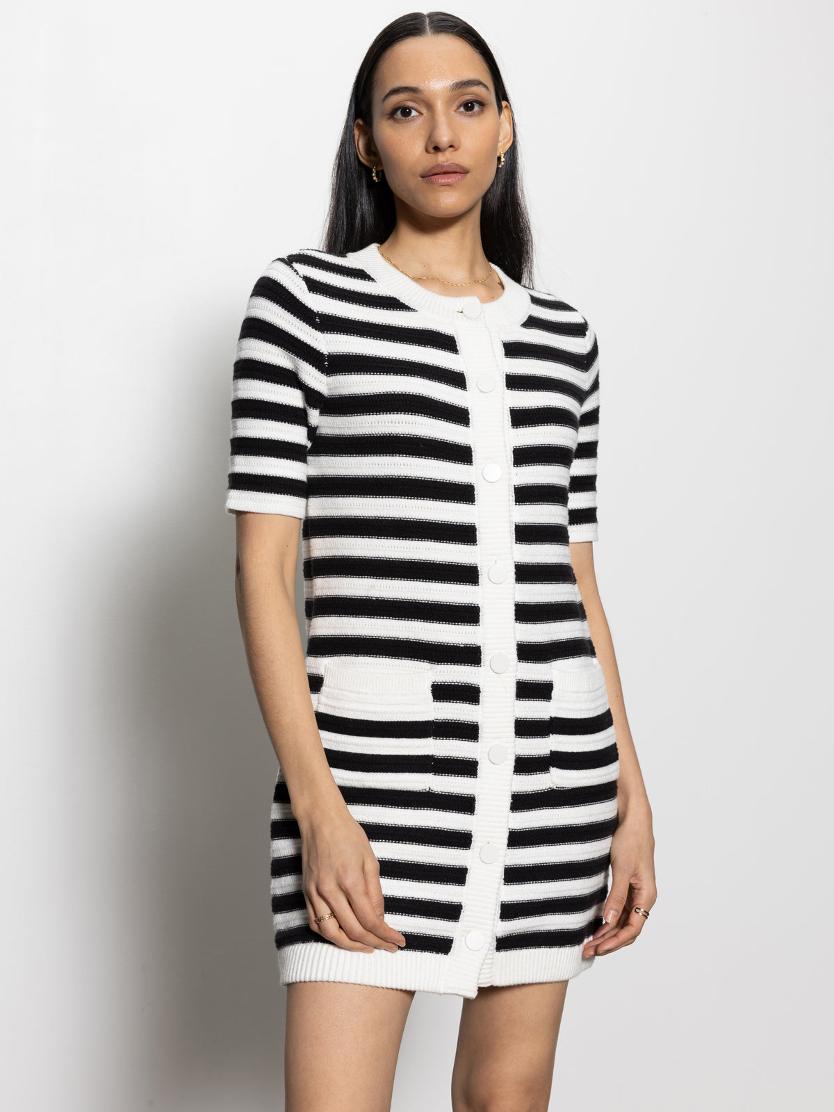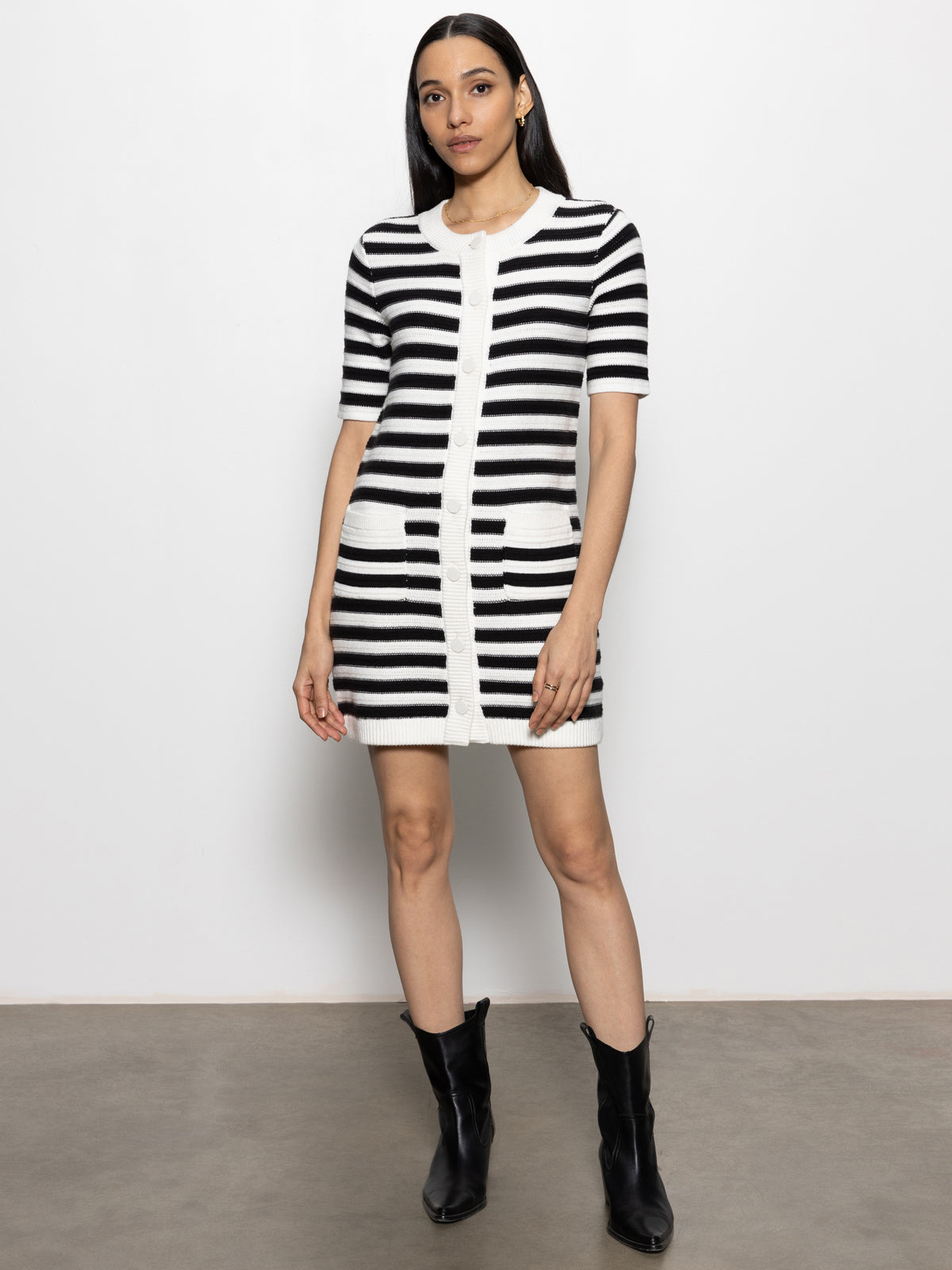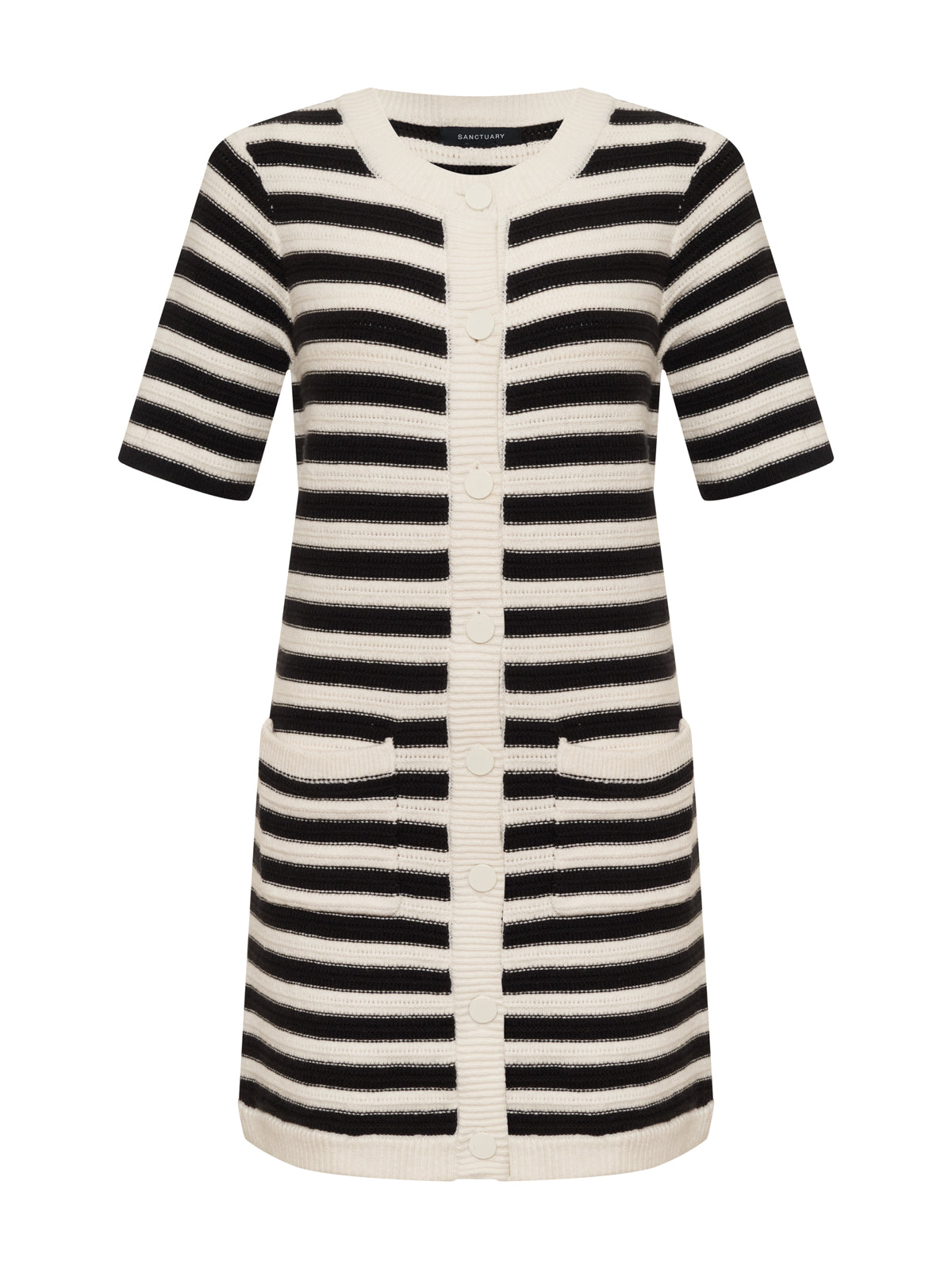Sanctuary Clothing Clothing Dresses & Jumpsuits Button Front Knitted Dress Chalk And Black Stripe