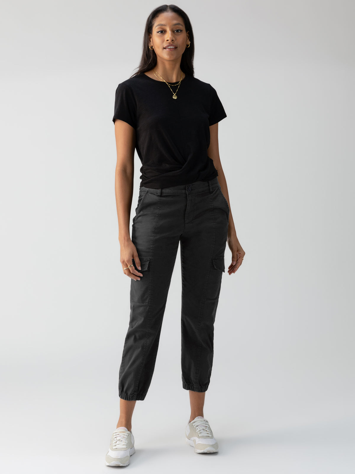 Make any day a stylish mission in our utility pants, complete with military-inspired pockets and elasticized cuffs.