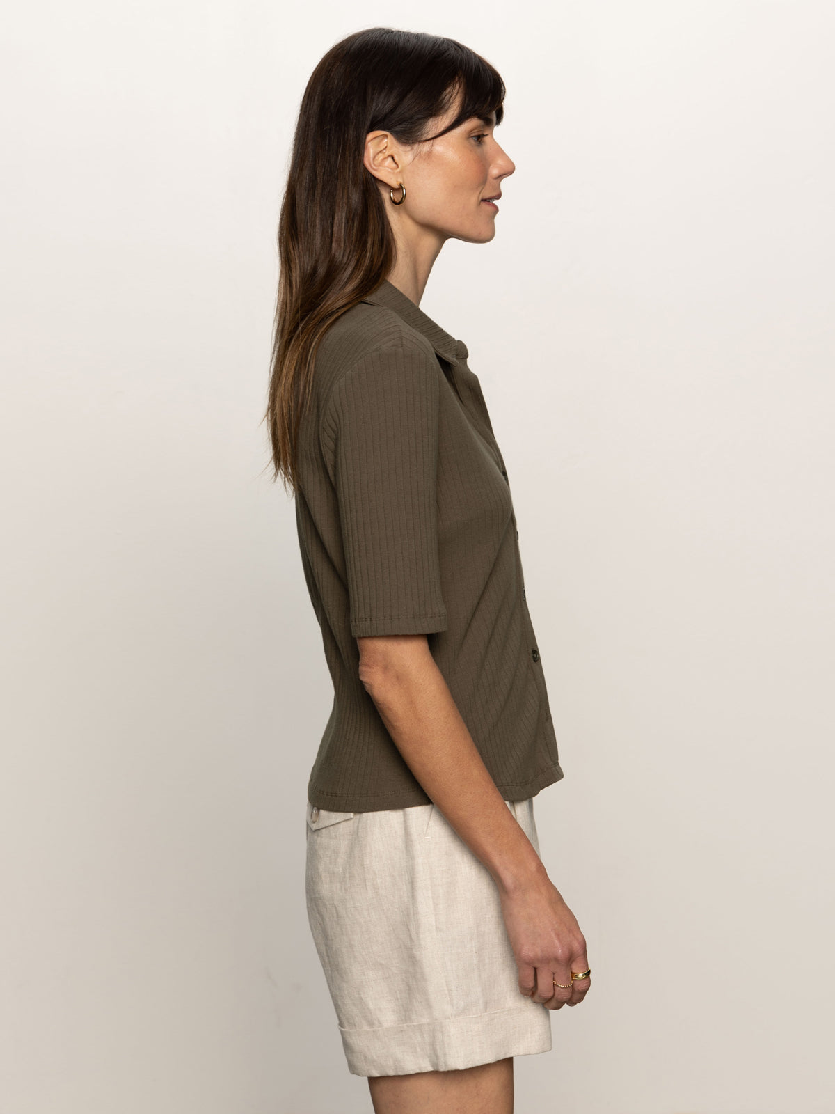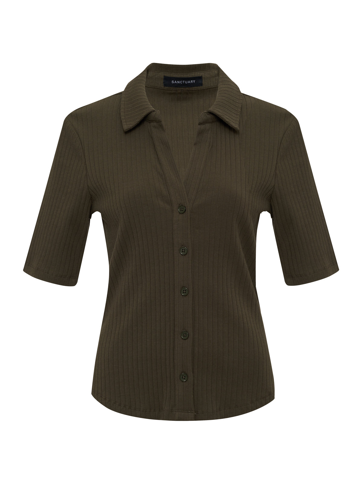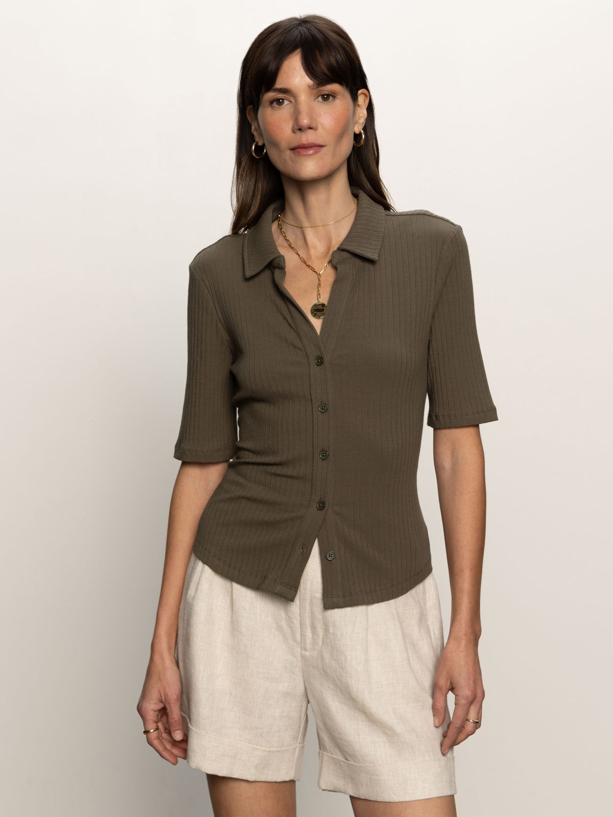 Sanctuary Clothing Clothing Sweaters & Cardis Half Sleeve Ribbed Knit Shirt Kalamata | Kalamata