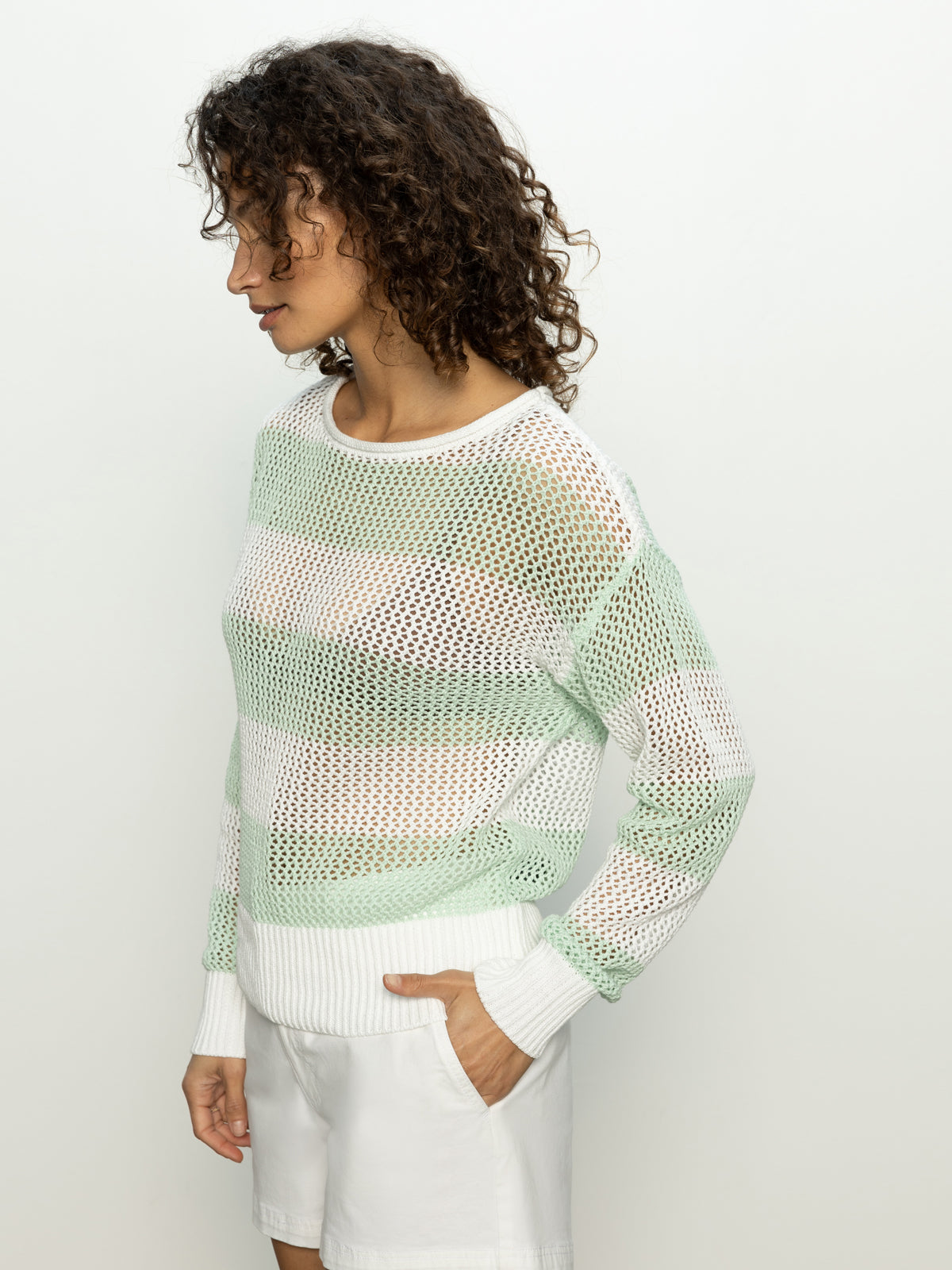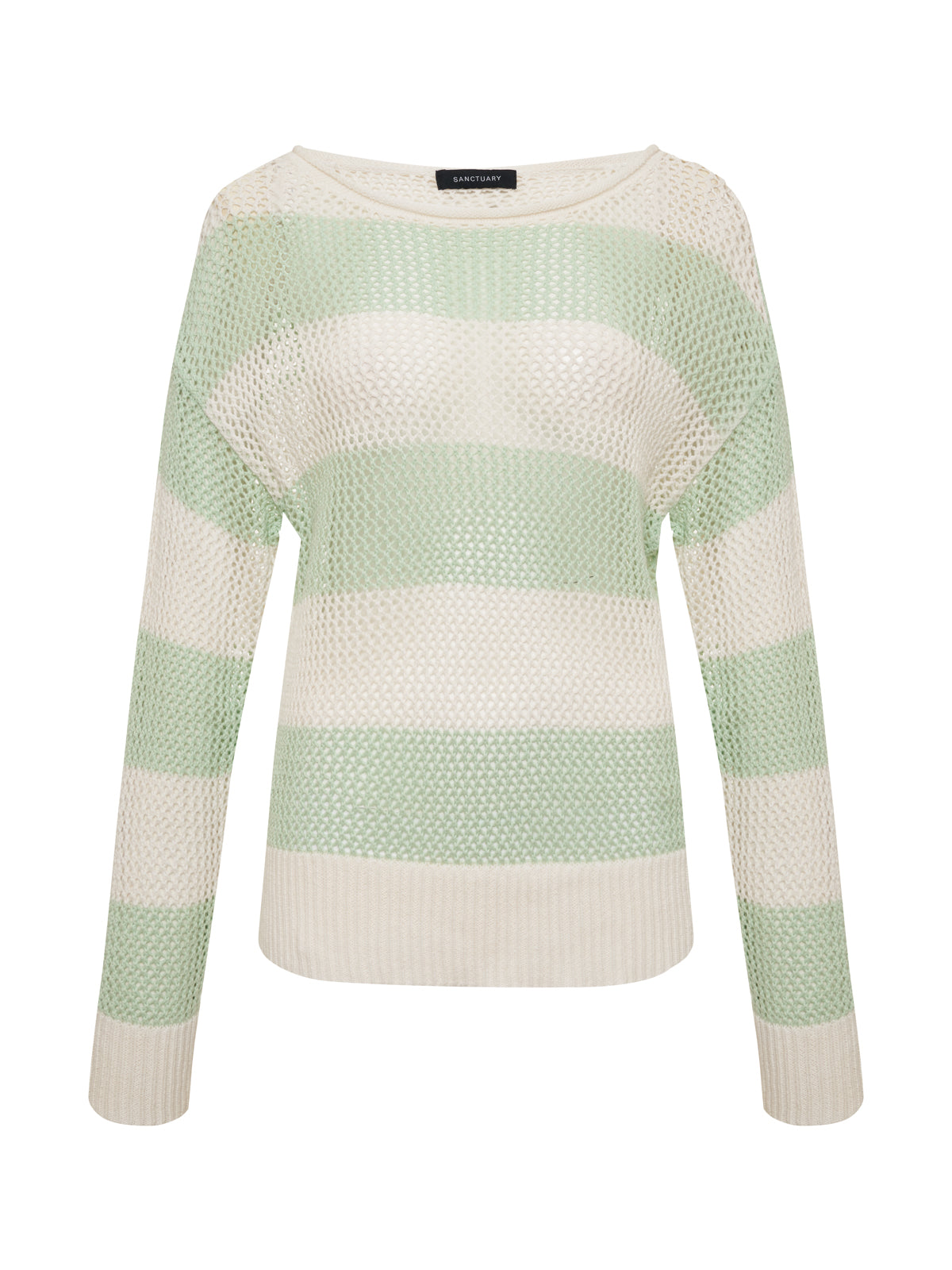 Sanctuary Clothing Clothing Sweaters & Cardis Open Knit Sweater Mint Tea / Chalk | Mint Tea Chalk Stripe