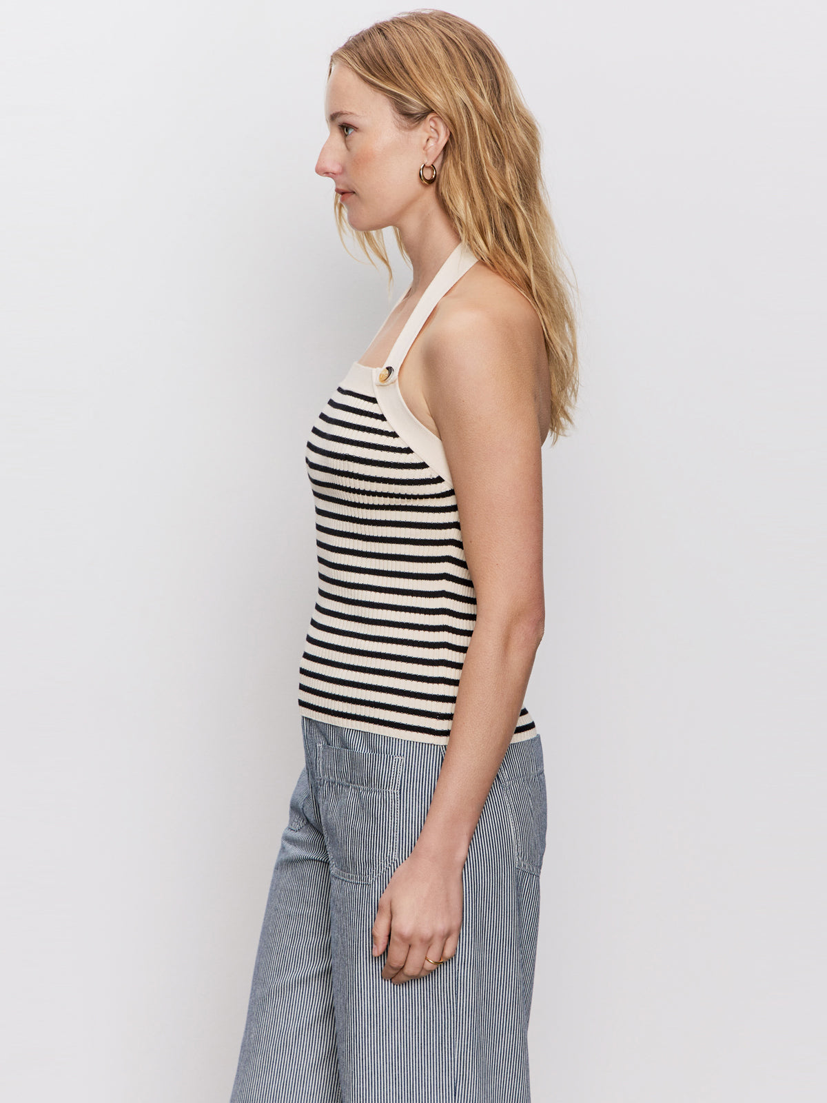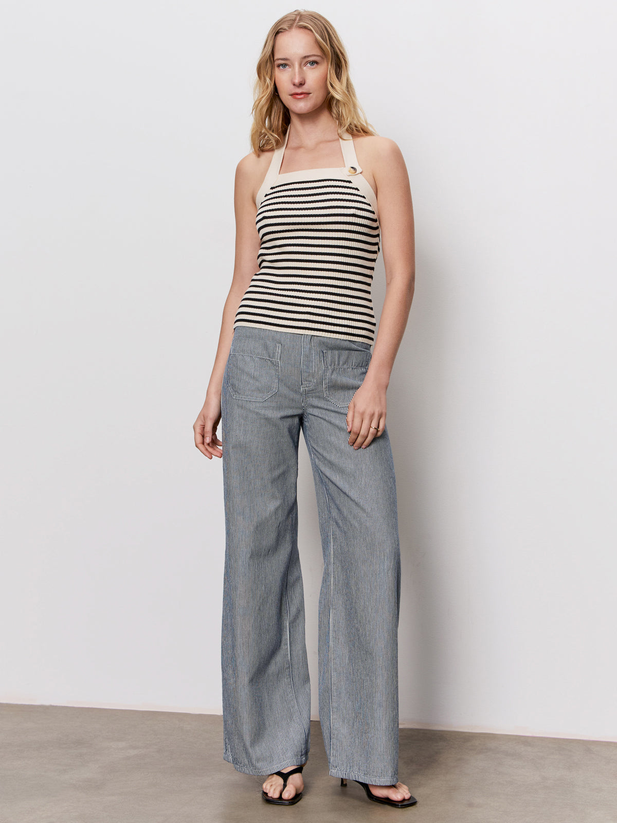 Sanctuary Clothing Clothing Sweaters & Cardis Sunkissed Rib Halter Top Black Macrame Stripe