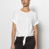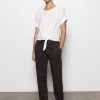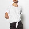 A knotted tie and rolled cuffs add understated casual chic to this essential slubbed cotton crew neck t-shirt with dropped shoulders.