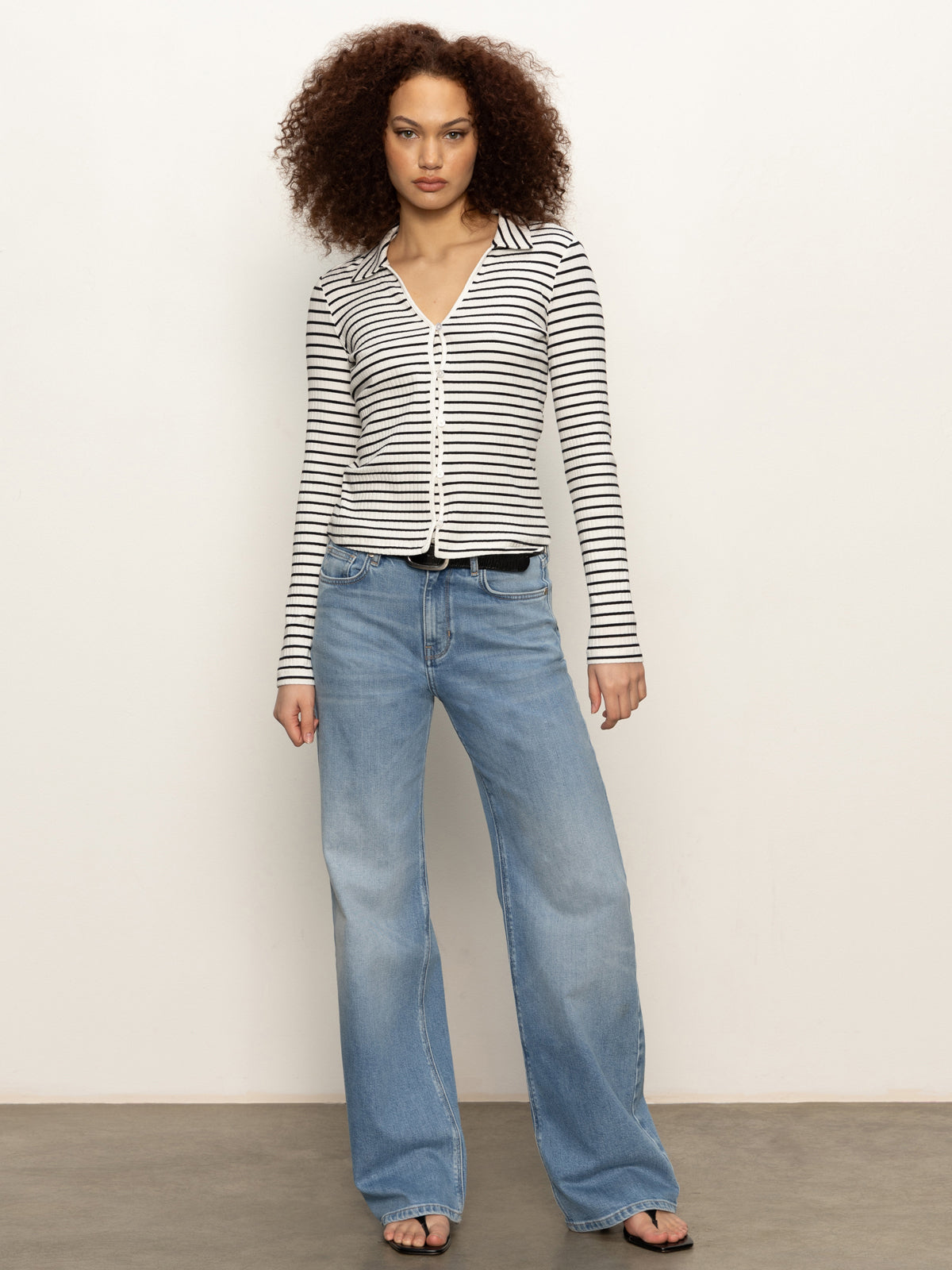 Sanctuary Clothing Clothing Tees & Tops Daydreamer Knit Shirt Chalk / Black Stripe | Chalk Black Stripe