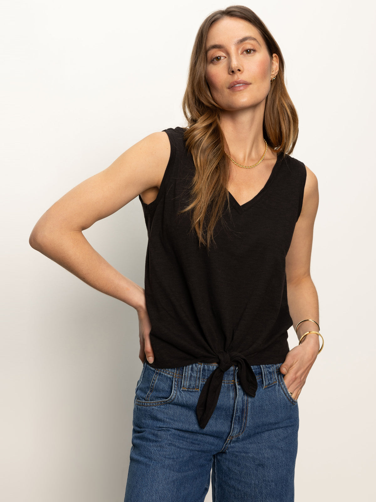 Sanctuary Clothing Clothing Tees & Tops V-neck Tie Tank Black | Black