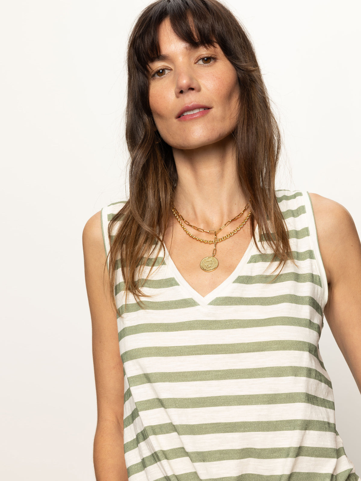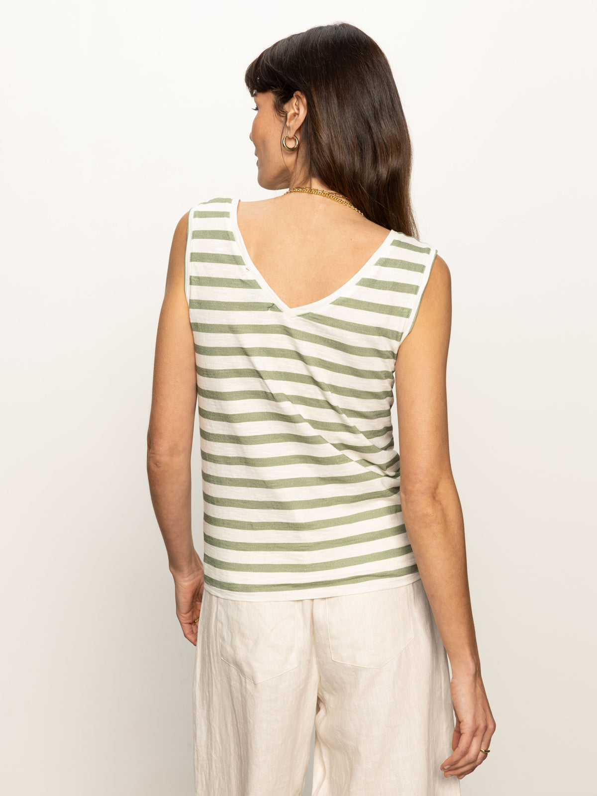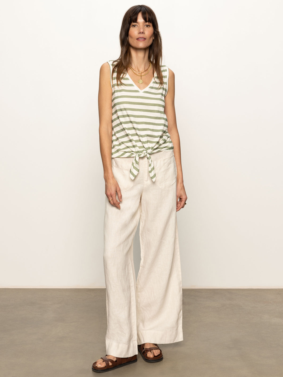 Sanctuary Clothing Clothing Tees & Tops V-neck Tie Tank Sage Muslin Stripe | Sage Muslin Stripe