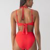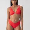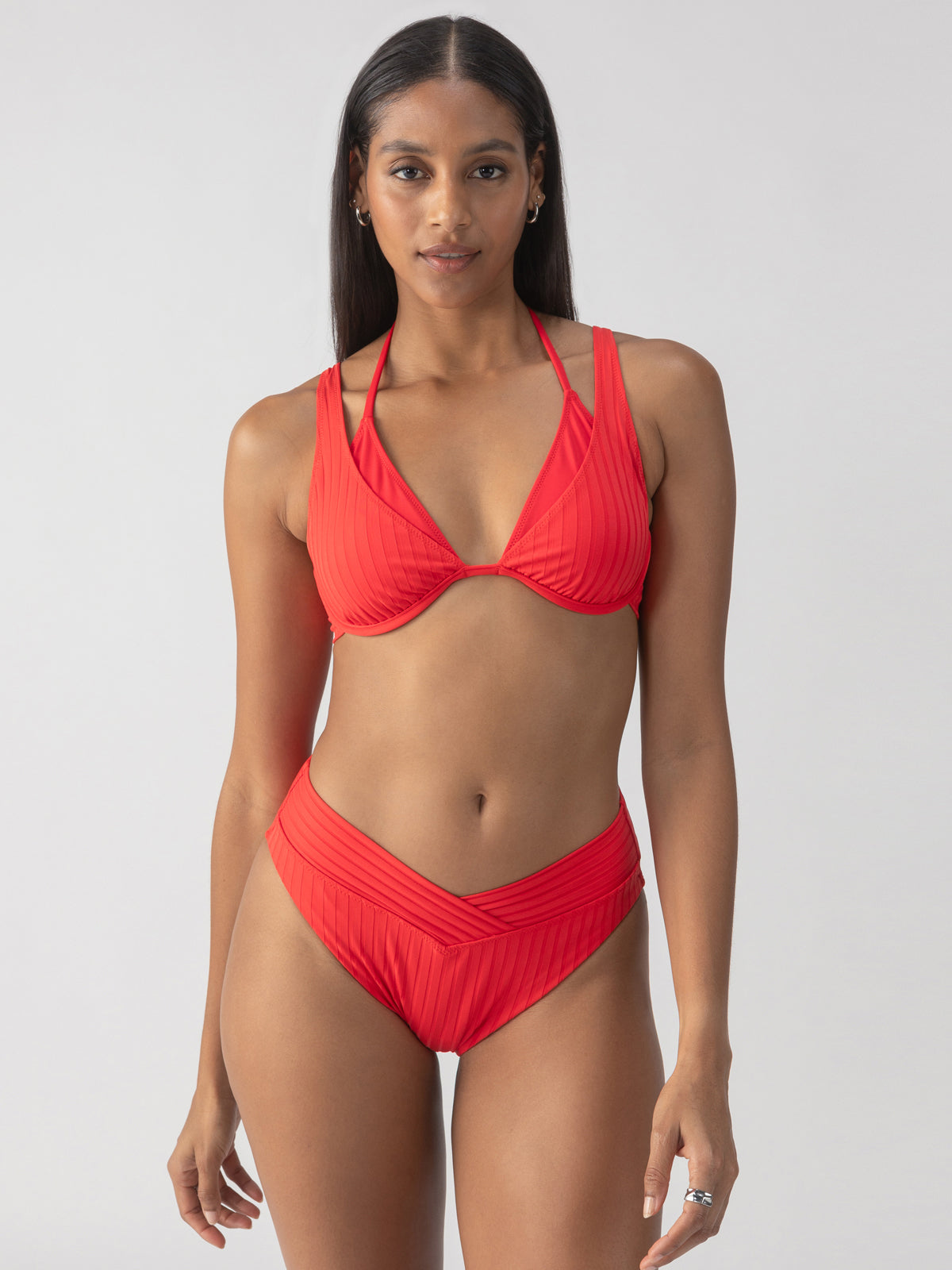 Sanctuary Clothing Swim Refresh Rib V Waist High Leg Bikini Bottom Mars Red
